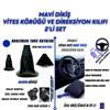 Honda Civic (2001-2005) Uyumlu Siyah Deri Mavi Dikiş Direksiyon Kılıfı ve Vites Körüğü 2'li Set.