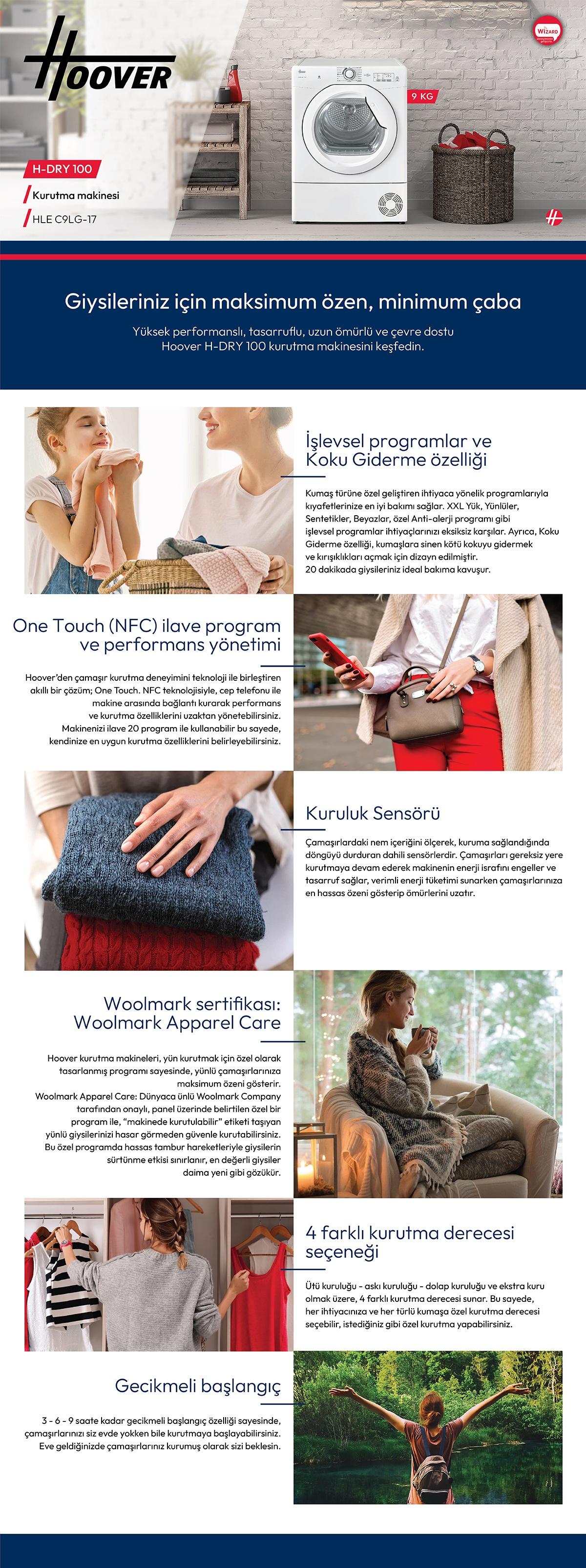 Hoover HLE C9LG-17 9 kg Çamaşır Kurutma Makinesi