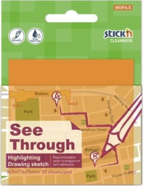 Hopax Stickn Yapışkanlı Not Kağıdı 76X76Mm Yarı Saydam Neon Turuncu 50 Yaprak 2171 4712759217108