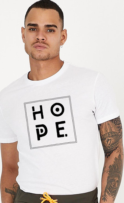 Hope Slogan Baskılı Bisiklet Yaka Erkek Tişört