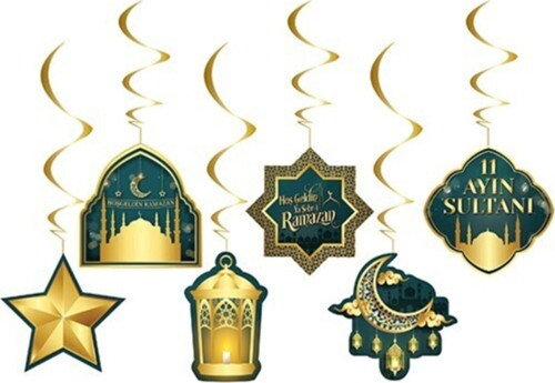 Paket içerisinde 6 adet ürün bulunmaktadır.; Ürünün asılı haldeki ölçüsü yukarıdan aşağı yaklaşık 70 cm gelmektedir.; 1.kalite parlak kağıttan üretilmiştir.; İçerisinde bulunan kılçık yardımı ile tavana,avizeye ve istenilen yere asılabilir.; 11 ayın sultanı,eid mubarak,ramazan bayramı,mübarek bayram partisi gibi bir çok özel günlerinizde kullanabilirsiniz;