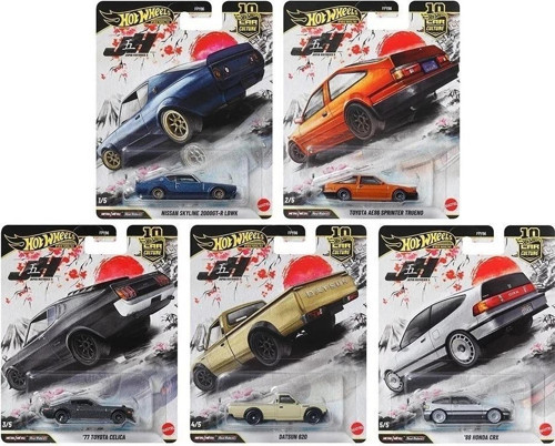 Hot Wheels Car Culture Japan Historics 5 (JH5) 5’li Tam Set, Japon otomobil kültürünün en ikonik modellerini premium detaylarla buluşturan özel bir koleksiyon serisidir. Metal gövde, gerçekçi lastikler (Real Riders) ve yüksek kalite işçilik ile koleksiyonerlere özel olarak üretilmiştir.