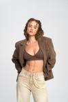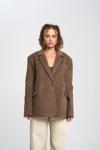 Katlı yaka ve yumuşak dokulu blazer. Vatkalı, uzun kollu, önü düğme kapamalı. Astarlı.