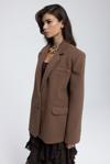 Katlı yaka ve yumuşak dokulu blazer. Vatkalı, uzun kollu, önü düğme kapamalı. Astarlı.