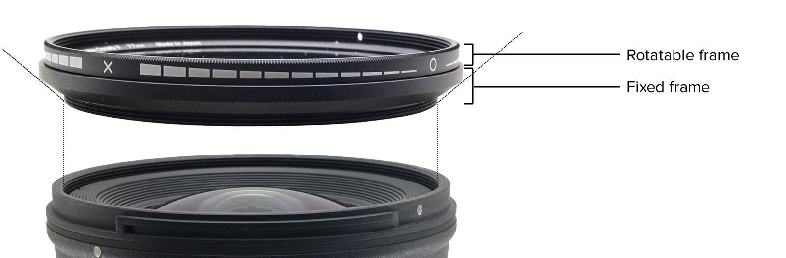 VURGULANAN ÖZELLİKLERHOYA Değişken Yoğunluk II, sabit çerçeve ve döner çerçeveden oluşan özel döner çerçeve konstrüksiyonunu içerir. Geniş açılı lenslerde kullanıldığında vinyet riskini en aza indirmek için döndürülebilir çerçeve sabit çerçeve boyutuna göre daha geniştir.