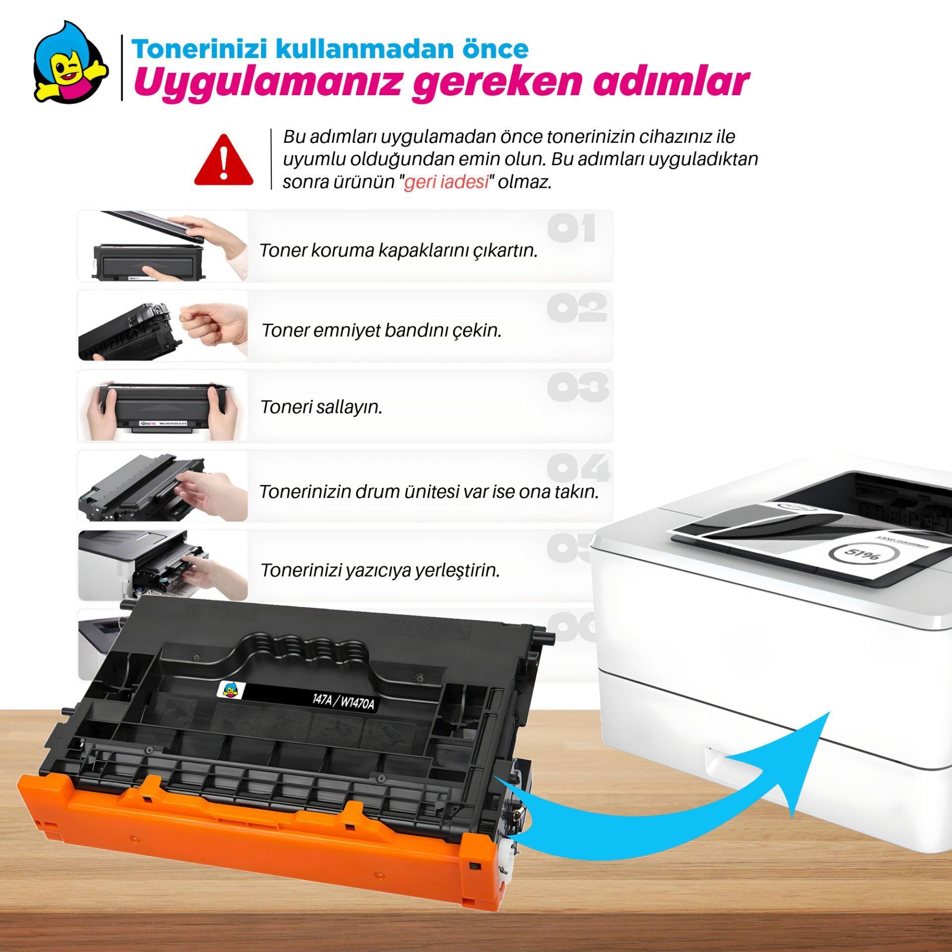 tonermax Hp 147X W1470X Muadil Toner - Çipli 4'lü Paket / LaserJet Enterprise Flow MFP M634 / M635 / M636 / M610 / M611 / M612 /