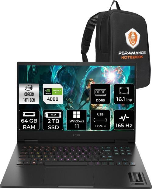 HP OMEN 16 i9-14900HX 64GB RAM 2TB SSD RTX4080/12GB 165Hz 16.1 FHD W11PRO 9J2A5EA & PER4 ÇANTA
