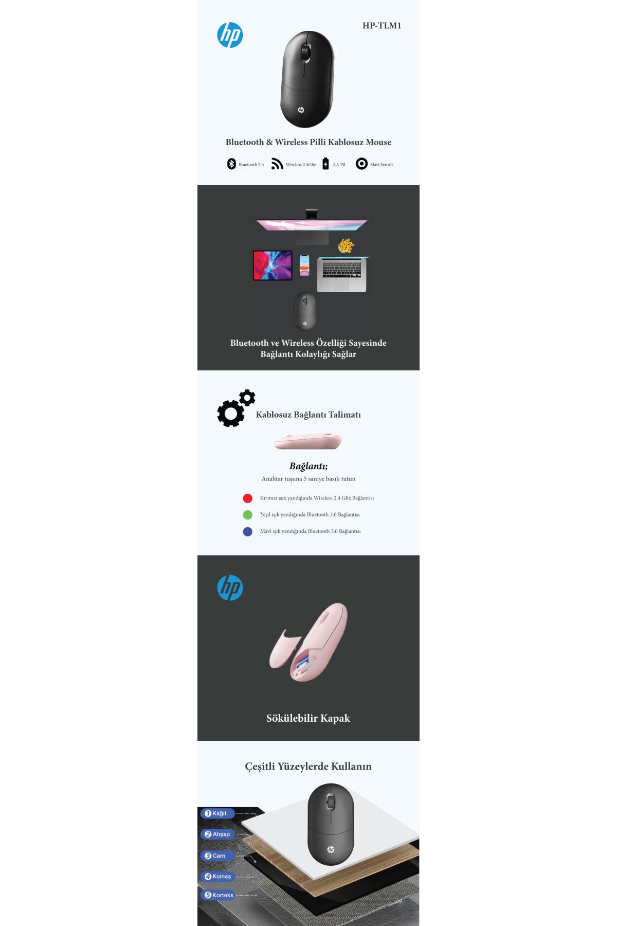 Hp TLM1 2,4Ghz Wireless Bluetooth Kablosuz Sessiz Mouse Siyah
