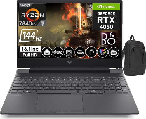 Hp Victus 16 S0021NT 7Z4N0EAW Amd Ryzen 7 7840HS 96GB Ddr5 512GB SSD 6gb RTX4050 16.1 Inç 144Hz IPS Fhd WINDOWS11HOME Taşınabilir Bilgisayar VİCTUS7Z4N0EAW16+WEBLEGELSINÇANTA