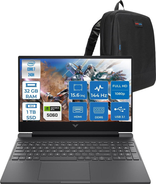 HP Victus Gaming Intel® Core™ 7 240H 32GB Ddr5 1tb SSD RTX5060/8GB 15.6"fhd (1920 x 1080), 144 Hz, Ips, 300 Nits Freedos Gaming Bilgisayar WC03P7EAF13+ZETTAÇANTA