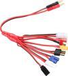 PM-24266 HTRC 8 in 1 Lipo Batarya Banana Şarj Kablo Seti, elektrikli model araçlarınızın batarya şarj işlemlerini daha verimli ve kullanışlı hale getirmek için tasarlanmıştır. Bu set, farklı bağlantı tiplerine sahip 8 farklı şarj kablosunu içerir ve IMAX B6 gibi popüler şarj cihazları ile uyumludur. TRX, JST, FUTABA, TAMIYA, EC3, XT60, TAMIYA MINI ve T Plug olmak üzere çeşitli bağlantı seçenekleri sunar.