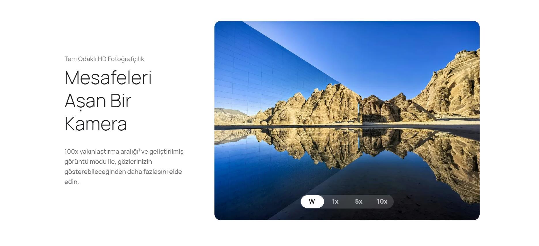1. Yakınlaştırma aralığı, maksimum yakınlaştırma oranının ultra geniş açılı büyütmeye bölünmesiyle elde edilen yaklaşık bir değerdir.