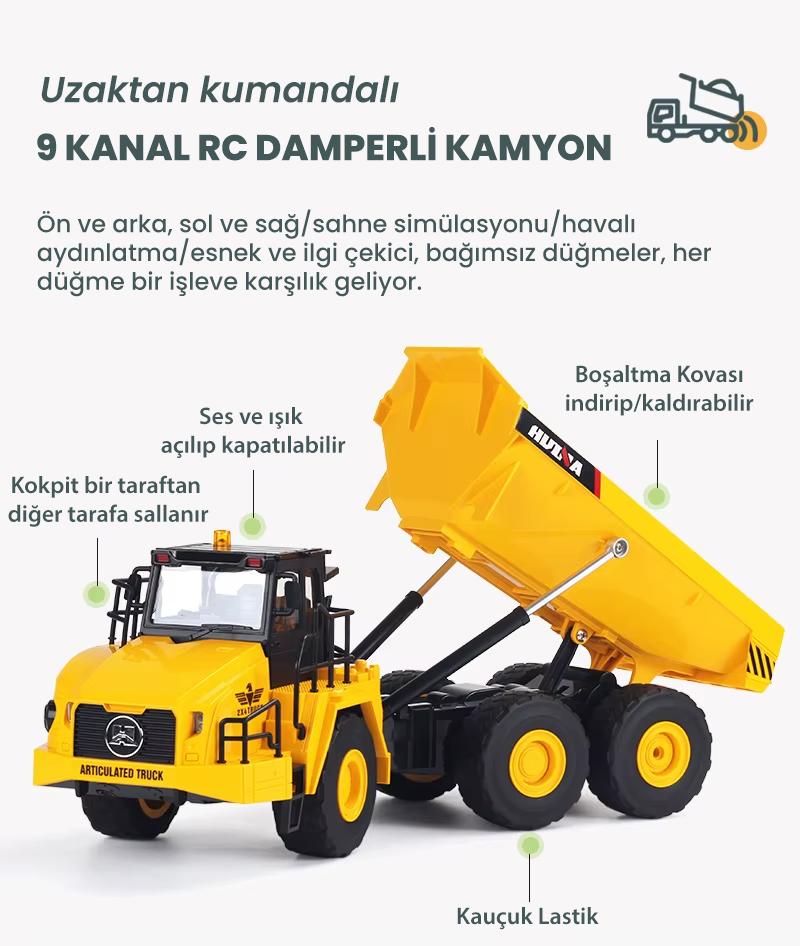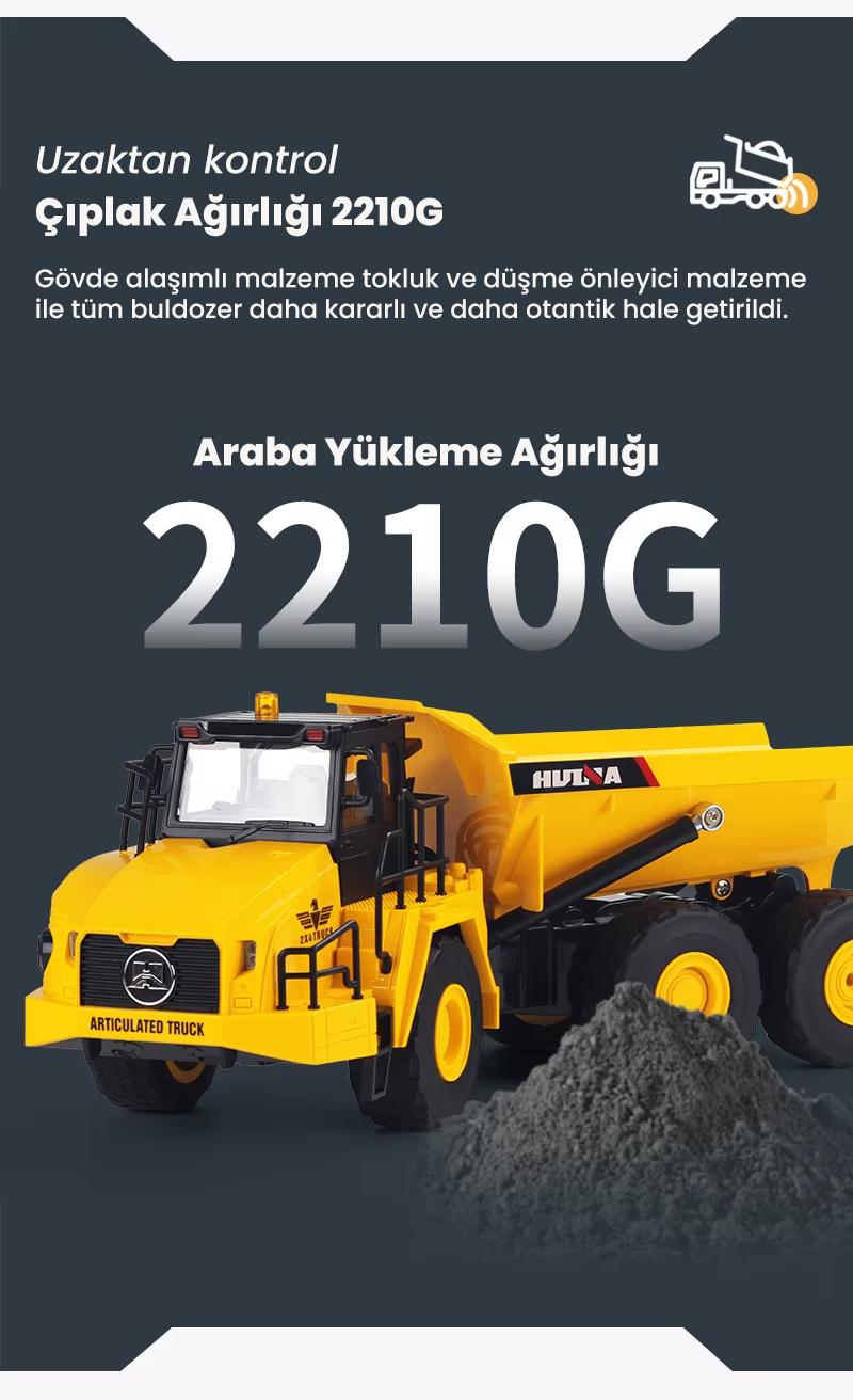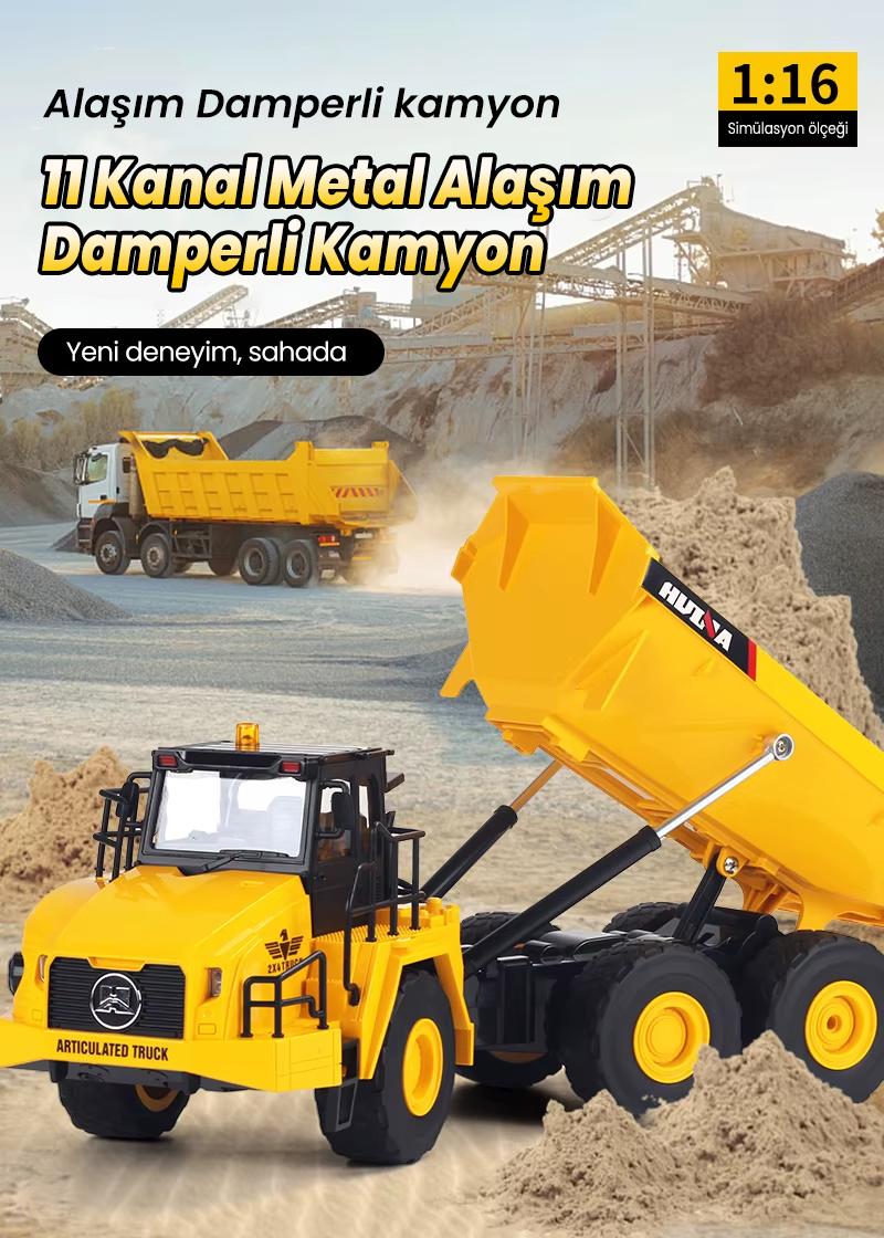 HUINA 1553 1/24 Yüksek Kalite 11CH RC Model Damperli Kamyon
