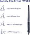 - Pilsiz Kalem - 266PPS rapor hızına ve 8192 basınç hassasiyet seviyesine sahip PW500 pilsiz dijital kalem, size doğa ve pürüzsüz çizgiler sağlar. ±60° eğim desteği gerçek fırça darbelerini taklit ederek size daha gerçekçi bir çizim deneyimi sunar.