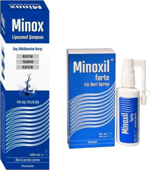 Humanis Minox Lipozomal Şampuan 300 Ml Ve Minoxil Forte %5 60 Ml Paket Deri Bakım Spreyi