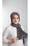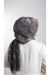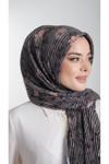 Hürrem Bone Antrasit-Gold Pratik Hazır Geçmeli Tesettür Eşarp Kesik Elyaf Piliseli Çiçek Desenli 1818D6_2502