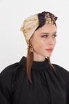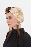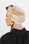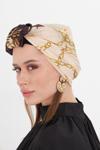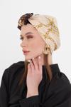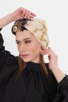 Hürrem Bone Bej Pratik Hazır Geçmeli Tesettür Bone Kesik Elyaf Retro Desenli 2409_12