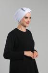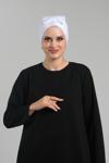 Hürrem Bone Beyaz Pratik Hazır Geçmeli Fiyonklu Bone Sandy Çift Taraflı Çapraz 3007B_42