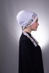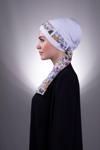 Hürrem Bone Beyaz Pratik Hazır Geçmeli Tesettür Bone Sandy Kumaş Desenli Şifon Kemerli 1205D_42