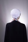 Beyaz Pratik Hazır Geçmeli Tesettür Bone Sandy Kumaş Desenli Şifon Kemerli 1205D_42