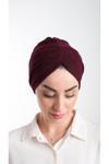 Bordo Pratik Hazır Geçmeli Tesettür Bone Fukuro Simli Büzgülü 2116_16