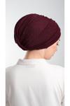 Hürrem Bone Bordo Pratik Hazır Geçmeli Tesettür Bone Fukuro Simli Büzgülü 2116_16