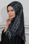 Hürrem Bone Siyah Pratik Hazır Geçmeli Tesettür Eşarp Medine İpeği Bağcıklı Çift Katlı Sufle Hijab 2302_01