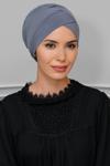 Gri Pratik Hazır Geçmeli Tesettür Bone Sandy Kumaş Çapraz Büzgülü 1801_15