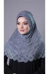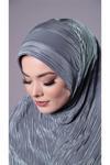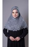 Hürrem Bone Gri Pratik Hazır Geçmeli Tesettür Eşarp Fukuro Kumaş Piliseli Çiçek Desenli Lazer Kesim 1829_15
