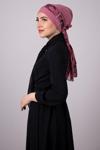 Hürrem Bone Gül Kurusu Pratik Hazır Geçmeli Tesettür Bone Sandy Kumaş Desenli Şifon Kemerli 1305D_18