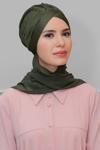 Hürrem Bone Haki Pratik Hazır Geçmeli Tesettür Bone Fukuro Piliseli Tek Çapraz Büzgülü Şifon Atkılı 1824A_09