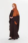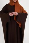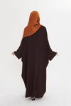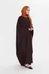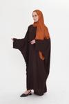 Hürrem Bone Kahve Yarasa Kol Oversize Medine İpeği Arkası Düğmeli Düz Elbise 4001_14