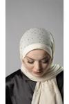 Hürrem Bone Krem Pratik Hazır Geçmeli Tesettür Şal Örme Kumaş Taşlı Yıldız Desenli  2118Y_40 - Image 1