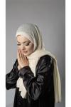 Hürrem Bone Krem Pratik Hazır Geçmeli Tesettür Şal Örme Kumaş Taş Desenli 2118T_40