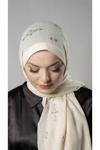 Hürrem Bone Krem Pratik Hazır Geçmeli Tesettür Şal Örme Kumaş Taşlı Yıldız Desenli  2118Y_40 - Image 1