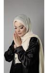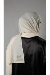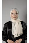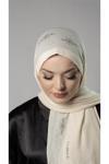 Krem Pratik Hazır Geçmeli Tesettür Şal Örme Kumaş Taşlı Yıldız Desenli  2118Y_40