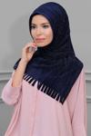 Hürrem Bone Lacivert Pratik Hazır Geçmeli Tesettür Eşarp Fukuro Piliseli Saçaklı Lazer Kesim 1828_02