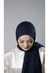 Hürrem Bone Lacivert Pratik Hazır Geçmeli Tesettür Şal Örme Kumaş Taş Desenli 2118T_02