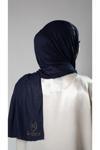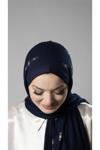 Lacivert Pratik Hazır Geçmeli Tesettür Şal Örme Kumaş Taşlı Çiçek Desenli  2118C_02