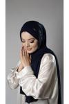 Hürrem Bone Lacivert Pratik Hazır Geçmeli Tesettür Şal Örme Kumaş Taşlı Çiçek Desenli 2118C_02
