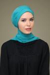 Hürrem Bone Mint Y. Pratik Hazır Geçmeli Tesettür Bone Sandy Kumaş Incili Nervürlü Güllü Atkılı 1805A_13