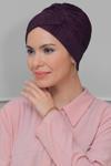 Mürdüm Pratik Hazır Geçmeli Tesettür Bone Fukuro Piliseli Çapraz Büzgülü 1822_07