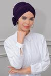 Hürrem Bone Mürdüm Pratik Hazır Geçmeli Tesettür Bone Sandy Kumaş Fiyonklu Çift Taraflı Tek Çapraz 1833_07