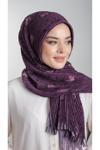 Mürdüm Pratik Hazır Geçmeli Tesettür Eşarp Kesik Elyaf Piliseli Çiçek Desenli 1818D6_07
