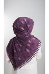 Hürrem Bone Mürdüm Pratik Hazır Geçmeli Tesettür Eşarp Kesik Elyaf Piliseli Çiçek Desenli 1818D6_07