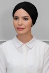 Hürrem Bone Siyah Pratik Hazır Geçmeli Tesettür Bone Sandy Kumaş Çapraz Büzgülü 1801_01