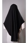 Hürrem Bone Siyah Pratik Hazır Geçmeli Tesettür Eşarp Medine İpeği Bağcıklı Çift Katlı Sufle Hijab 2302_01 - Image 1