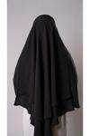 Hürrem Bone Siyah Pratik Hazır Geçmeli Tesettür Eşarp Krep Bağcıklı Çift Katlı Sufle Hijab 2314_01