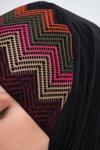 Hürrem Bone Siyah Pratik Hazır Geçmeli Tesettür Eşarp Sandy Renkli Desenli Fileli 2401_01