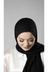 Hürrem Bone Siyah Pratik Hazır Geçmeli Tesettür Şal Örme Kumaş Taş Desenli 2118T_01